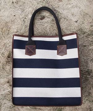 French Stripe Market Tote - Khaki/Navy