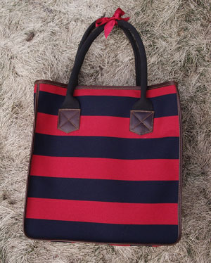 French Stripe Market Tote - Red/Navy